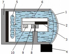 folyadék csillapítja mozgásában (6), ami általában ligroin. A házban